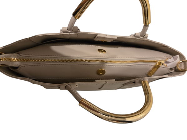 Valentino creations gevlochten tas, met extra strap en gouden handvatten.